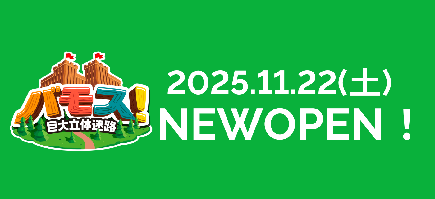 重要なお知らせお知らせ【11/22~新施設オープン!】巨大立体迷路バモス!~“迷宮の森”で大冒険!!~