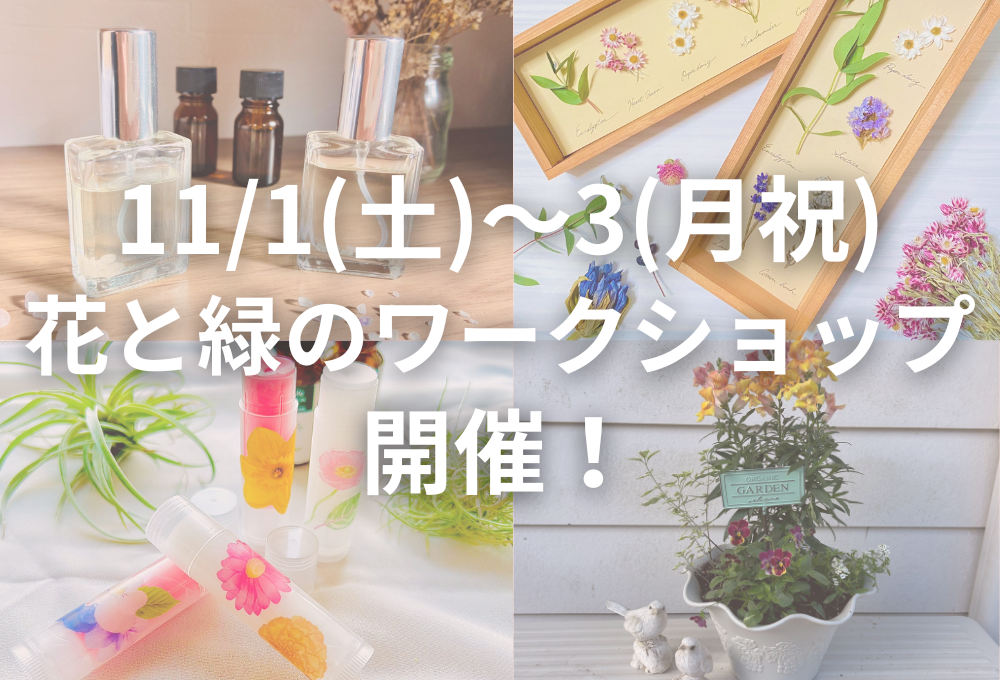 重要なお知らせお知らせイベント・講座花と緑11/1(土)~3(月祝)【花と緑のワークショップ】開催!