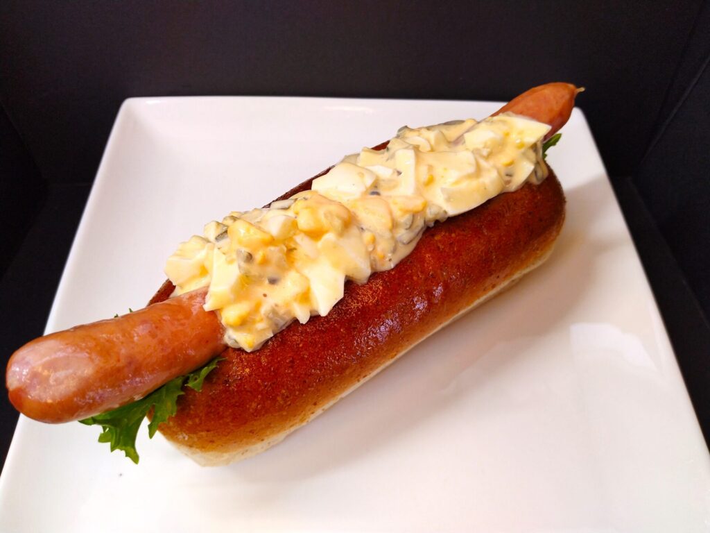 本場ドイツの伝統的で格式高いコンテスト『IFFA2022』(イーファ2022)で金メダル受賞した豊前みやこハムの最高級ウインナーと国産小麦全粒粉のスペシャルドッグパンでの真のホットドッグに自家製タルタルとの相性はぴったりです。