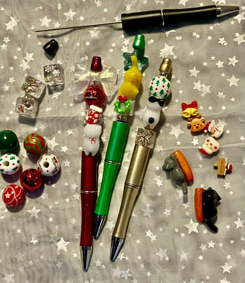 猫をテーマに、心温まる小物を作る「ふくたまや」です。今回は、人気の猫ちゃんビーズのボールペンをクリスマス仕様にアレンジしました!
