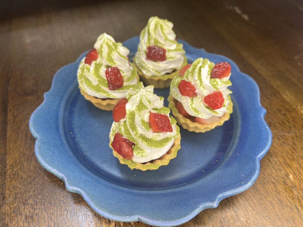 クリスマスツリーに見立てたひとくちサイズのタルトです。チーズケーキ入りとチョコケーキ入りの2種類をご用意しております。