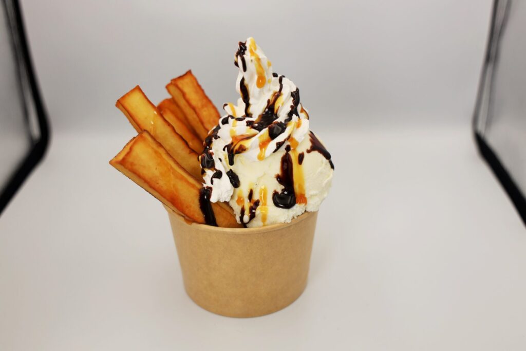 某夢の国でも使用されている本物のチュロス(星形)を特別に取り寄せて提供致します。絶妙な揚げ具合による外はサクサク中はモッチリ食間をお楽しみください。