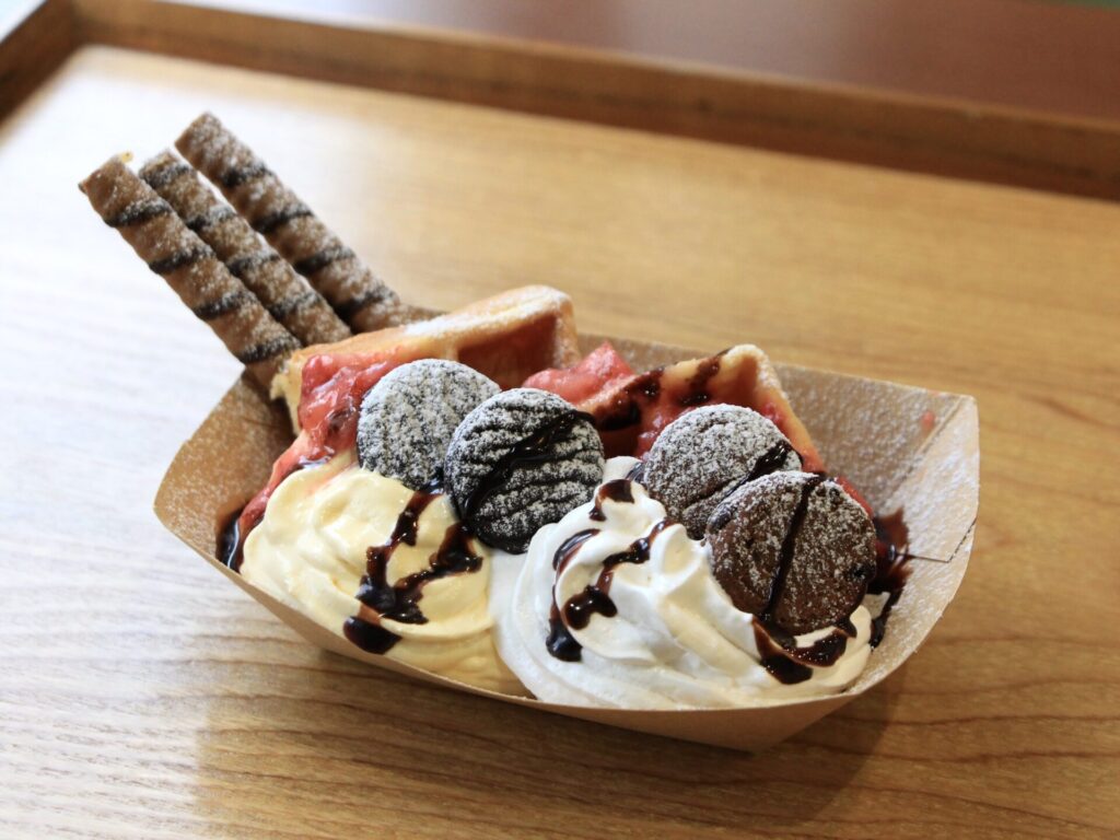 自家製のアメリカンワッフルに3種類のチョコクッキーと2種類のクリームを贅沢に使用。ストロベリーの酸味とチョコソースの甘みが口いっぱいに広がるクリスマス限定のスイーツです。