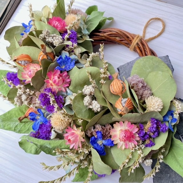第5回ドライフラワーアレンジメント教室「青色が美しいハーフリースづくり」