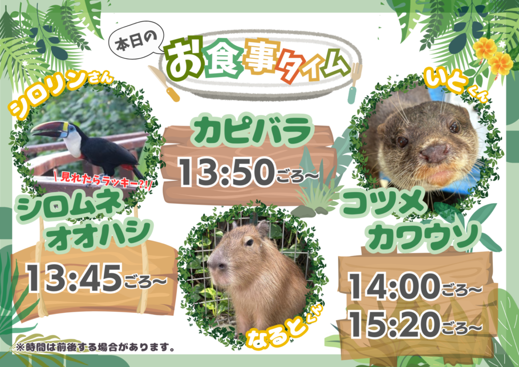 動物たちのお食事タイムは、開園日は毎日開催中!