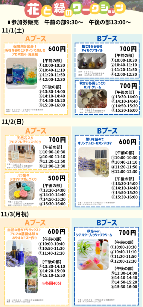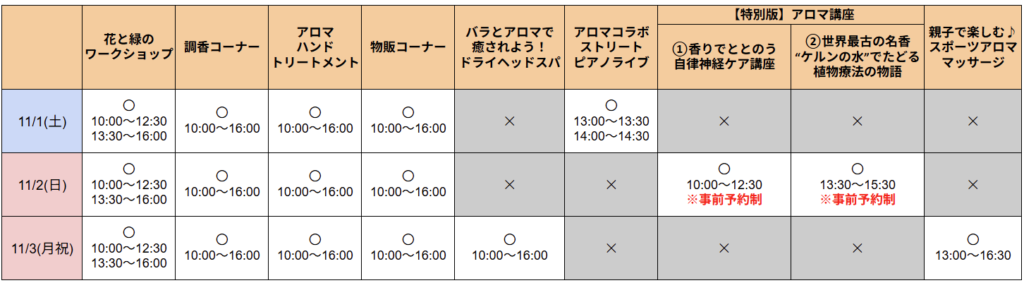 11/1(土)~3(月祝)は、【秋のアロマ祭り2025】開催!