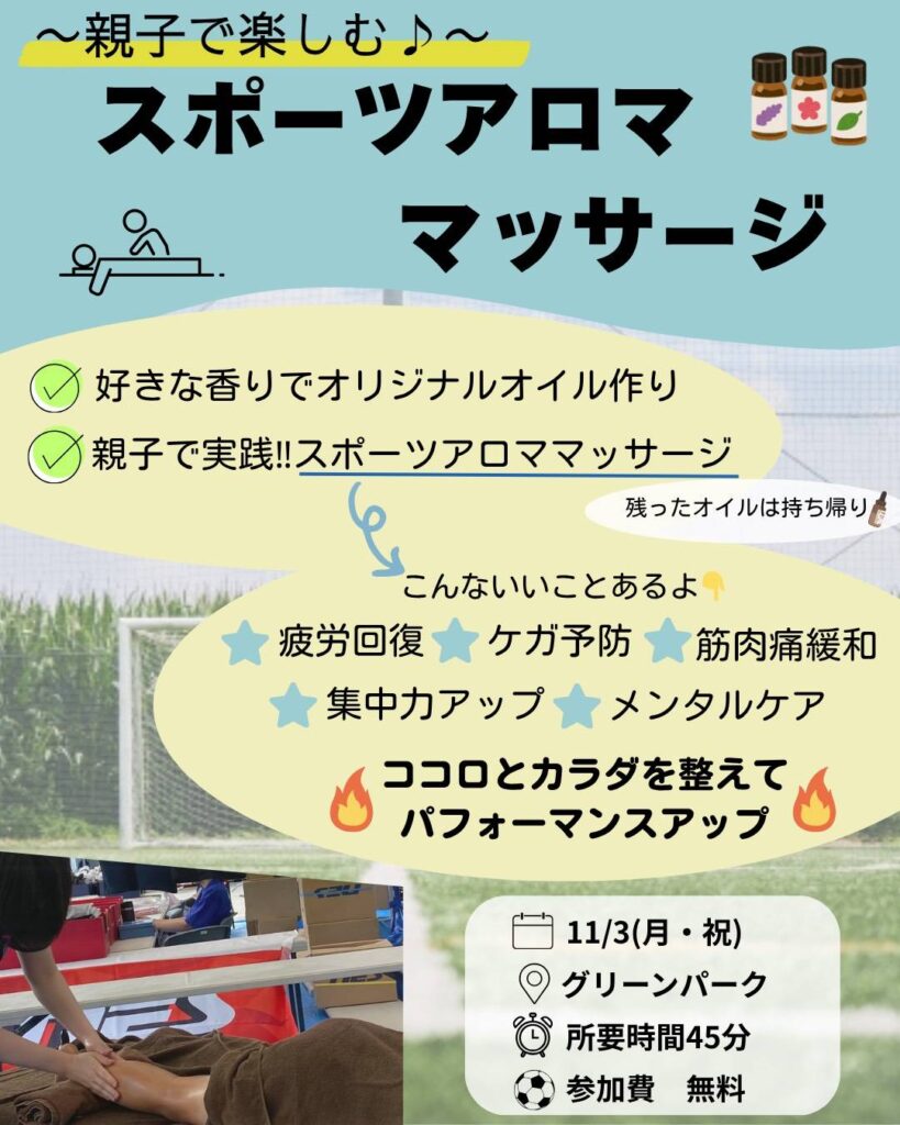11/3(月祝) 親子で楽しむ♪スポーツアロママッサージ