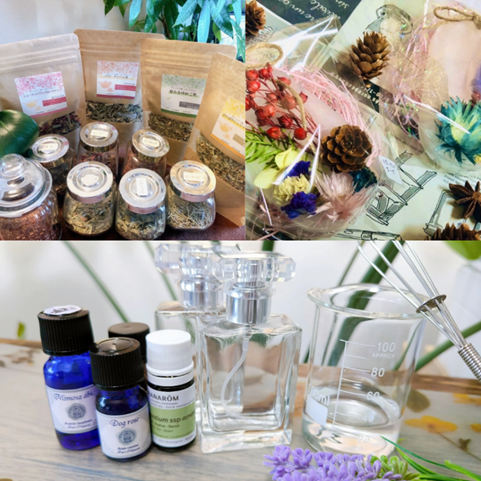 人気のオリジナルハーブティー、アロマキャンドル、ワックスサシェなどを販売。