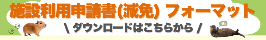 ② 施設利用申請書(減免)のフォーマットをダウンロードし、必要事項を記入する。