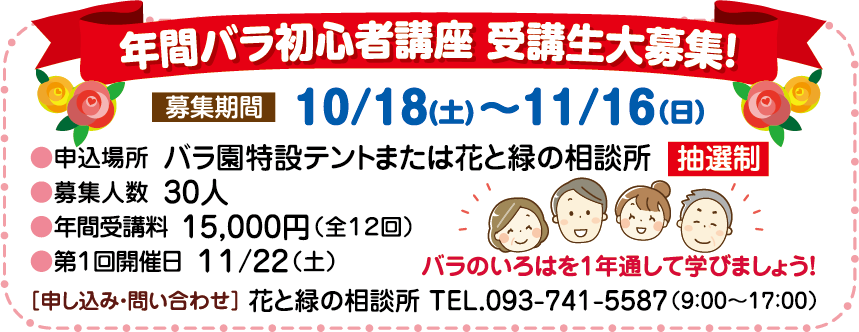 また、「秋のバラフェア」開催期間中は、初心者バラ講座の受講生を募集‼