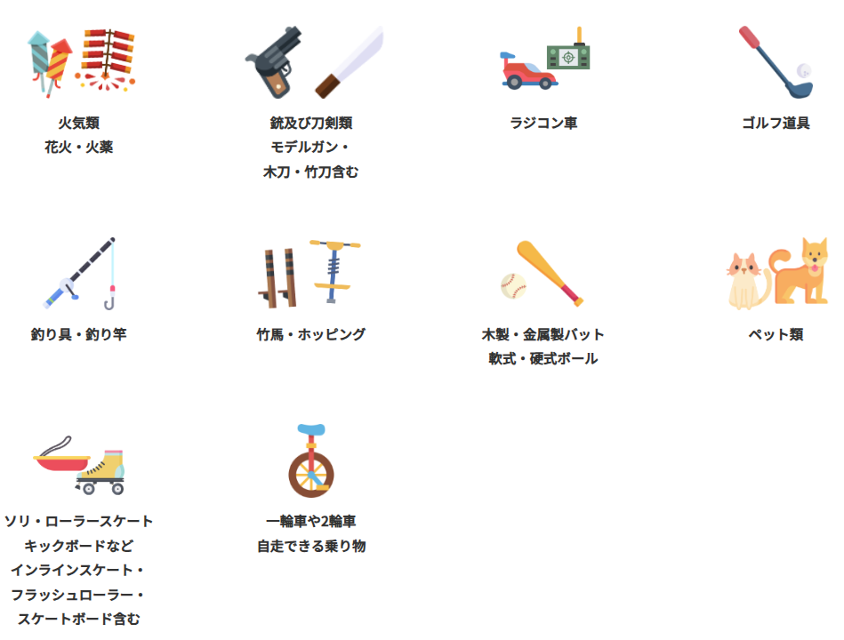 園内では、お客様の安全確保のため、【持ち込み禁止品】を定めております。