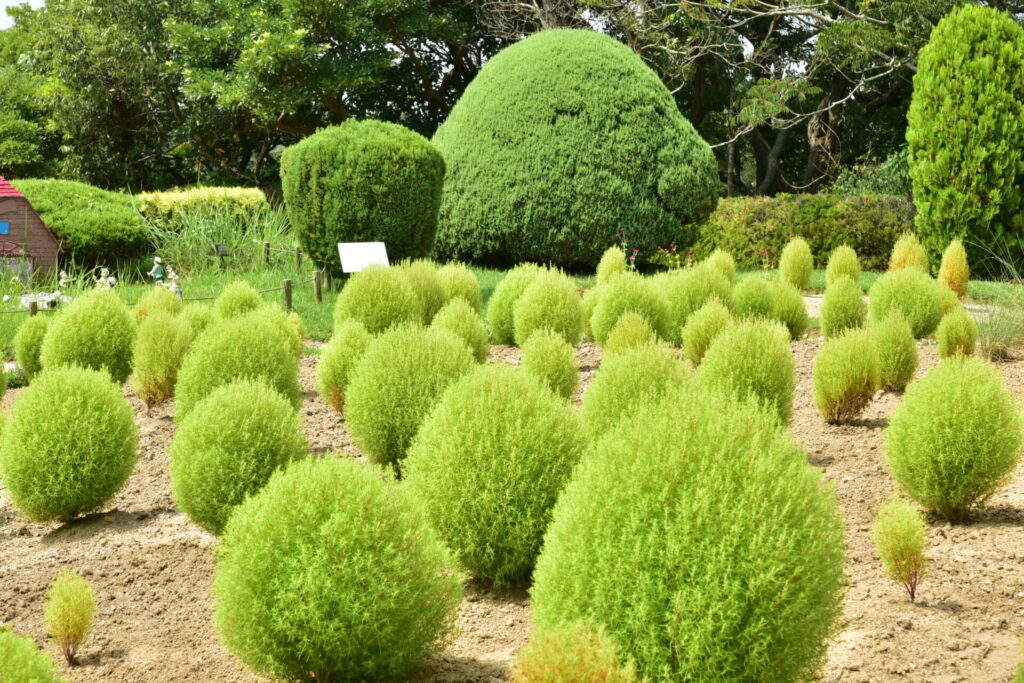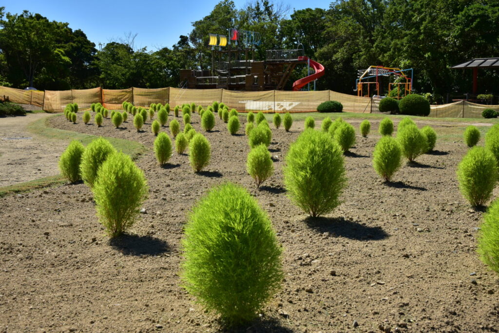 童話の森のコキアが見頃です♪(紅葉は10月中旬~下旬頃の予想)