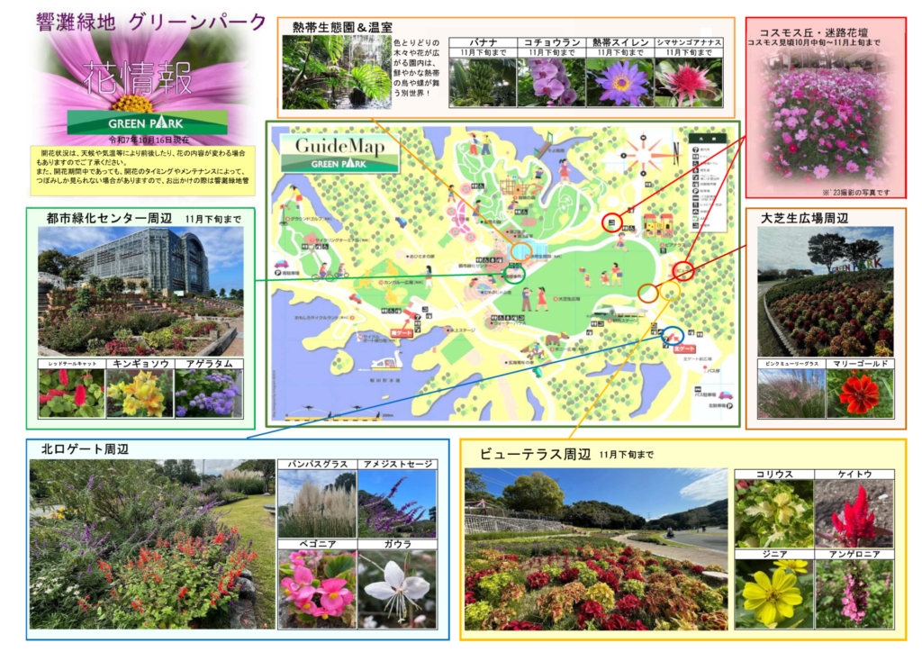 2025年11月下旬までのグリーンパーク園内における花の見頃情報を更新しました!