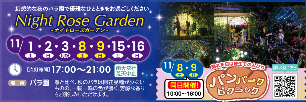 ▢11/1(土)~16(日)土日祝限定! Night Rose Garden(バラ園ライトアップ)